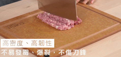 獨特的高溫高壓工藝,使這塊砧板做到沒有毛細孔!所以任何細菌和水鑽都無法在砧板上殘留