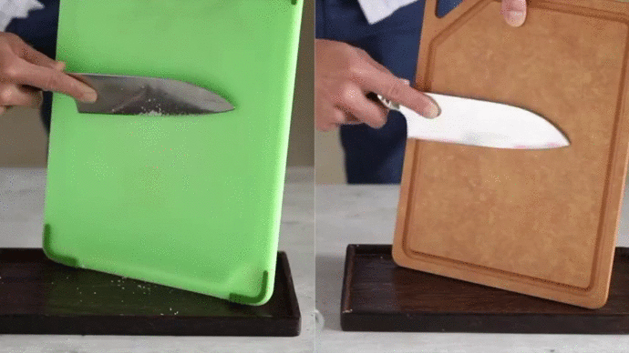 高密度木纖維擁有適中的韌性,切菜時手感穩、聲音柔和,不會磨損刀刃,也不會產生塑膠屑,讓料理更安心、刀具更耐用。