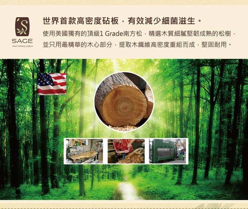SAGE採用高密度木纖維製成,表面細緻光滑、不吃油,即使處理肉類、魚類或醬料,也能輕鬆沖淨無殘留。