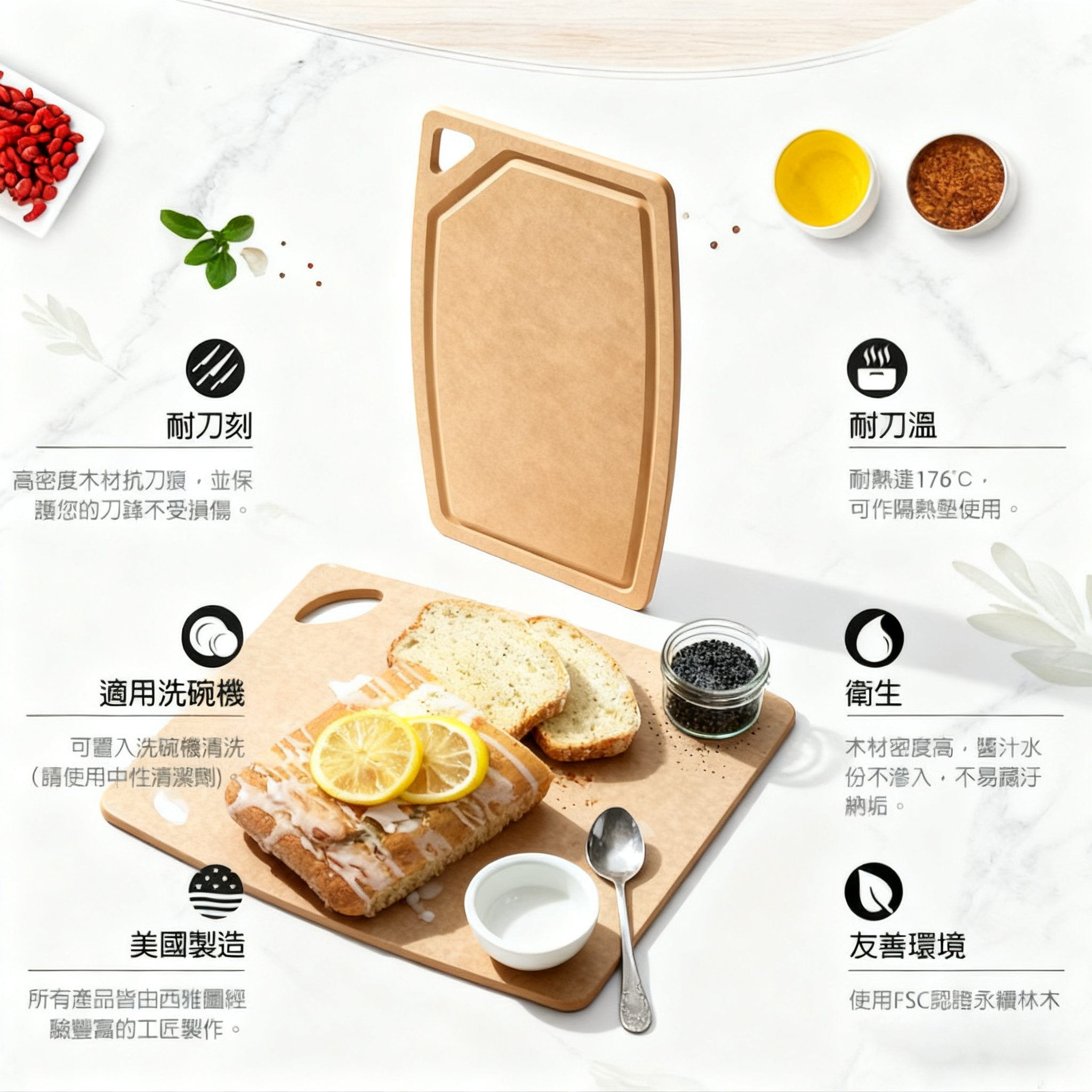 這塊美國木纖維砧板真的好用!高密度不吸水、不發霉,切完肉直接切菜也沒異味。刀感穩又能進洗碗機,耐用又衛生,推薦給每天開火的朋友,一塊就能用很久!