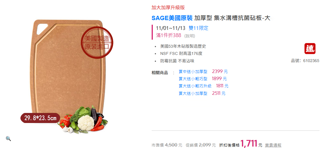 原價NT$1711的美國sage life高密度抗菌防霉砧板